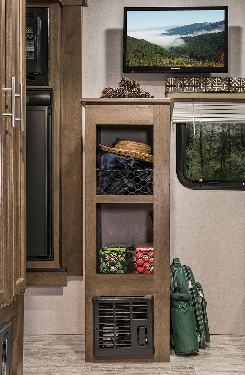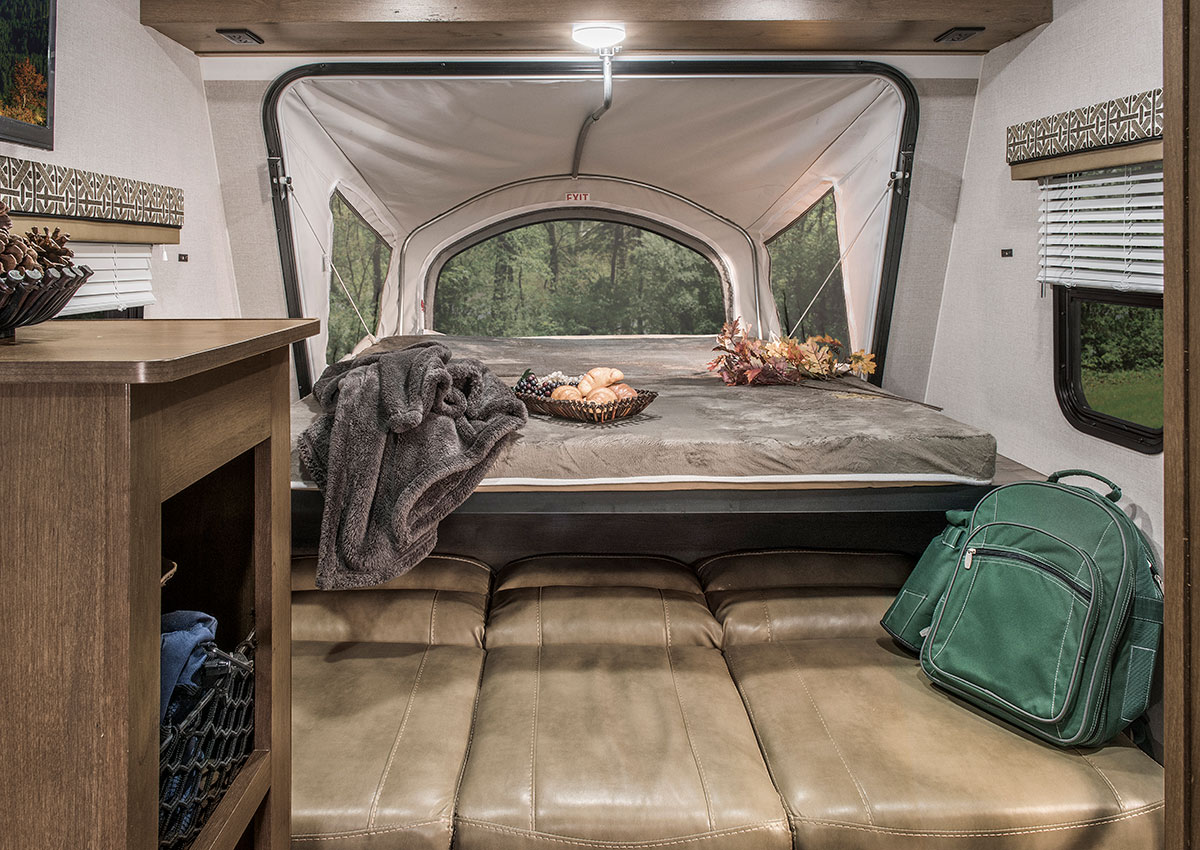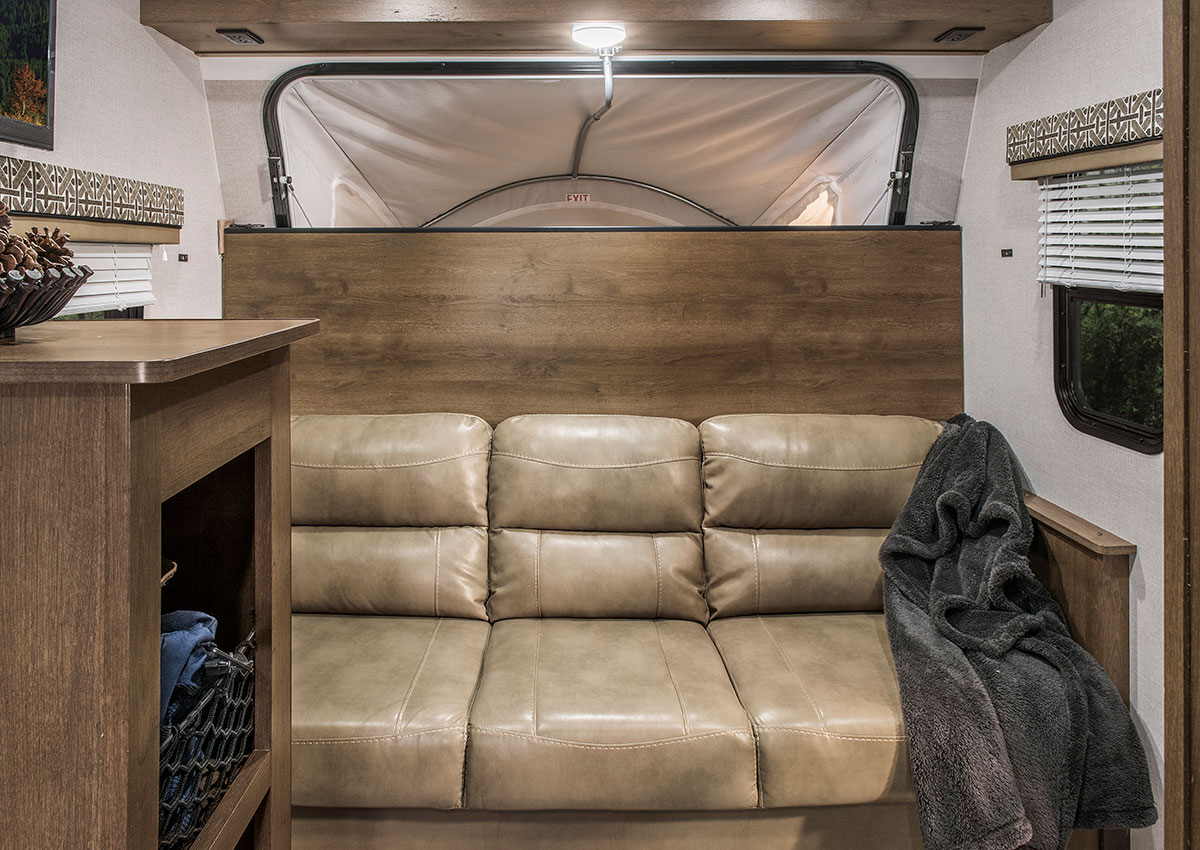 The M181KST’s innovative features save space while catering to your needs. The dinette is utilized during the day by folding up the bed extension. At night, the extension folds down to create a large, comfortable bed. There’s nothing “mini” about the pleasantly practical kitchen. It includes all the appliances you need for meals on the road, including a deep sink large enough for filling pots and pitchers. Escape expandables feature sturdy self-supporting bunkends covered with durable heat resistant, waterproof Aqualon Edge® tent material that can withstand years of hard use. And, Aqualon Edge is backed by a 7-year warranty on the tent material.