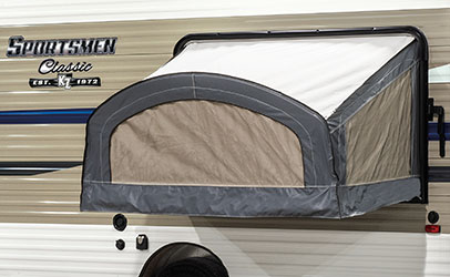 The Aqualon Edge fabric is permanently attached to the bunk end door, so there are no more velcro strips or bungee cords to mess with.