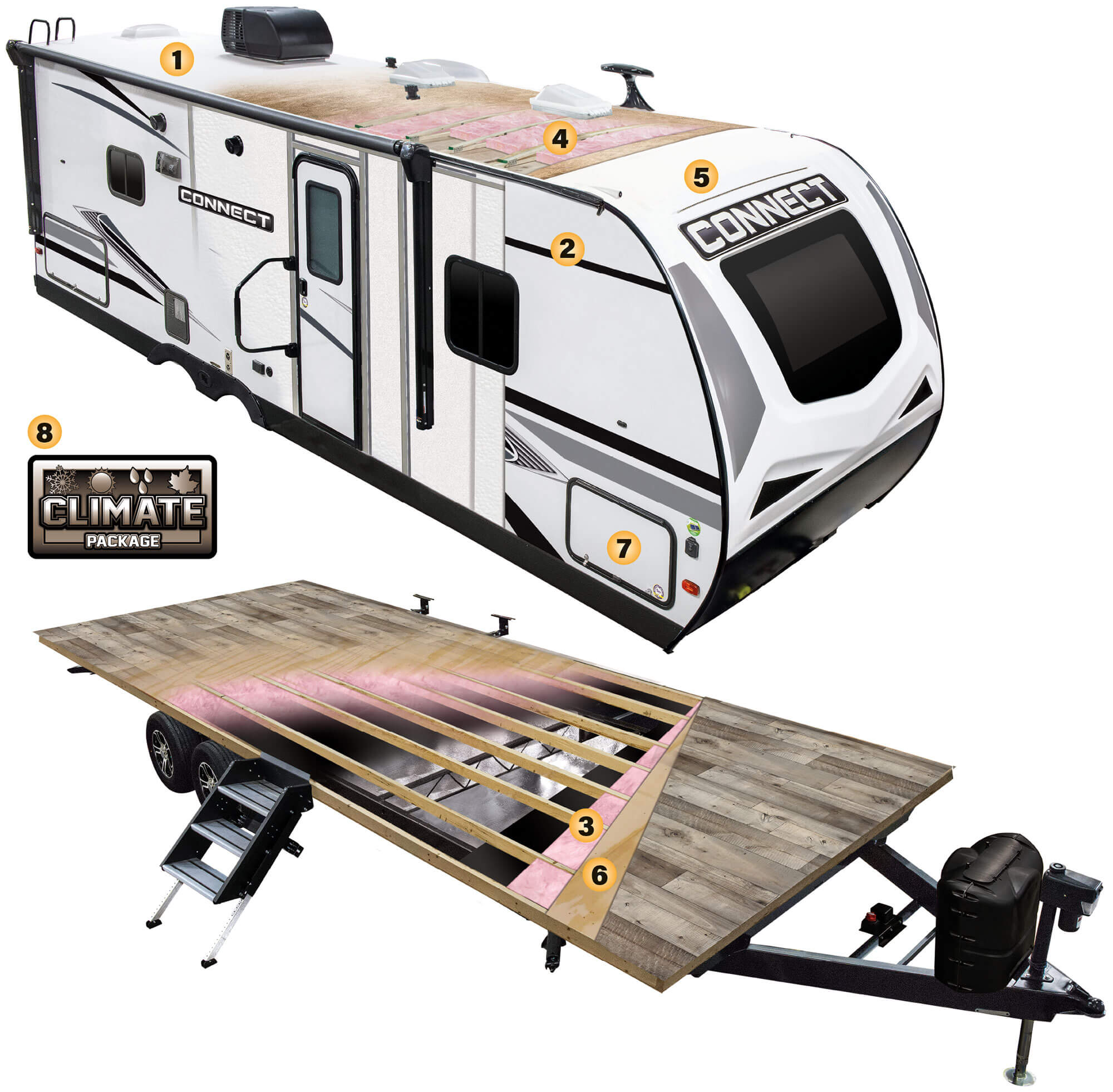 - CLIMATE PACKAGE added insulation so you can extend the camping season, with a fully enclosed, insulated and heated underbelly to protect tanks and pipes (R-9* sidewalls, R-20* roof and R-24* floor)