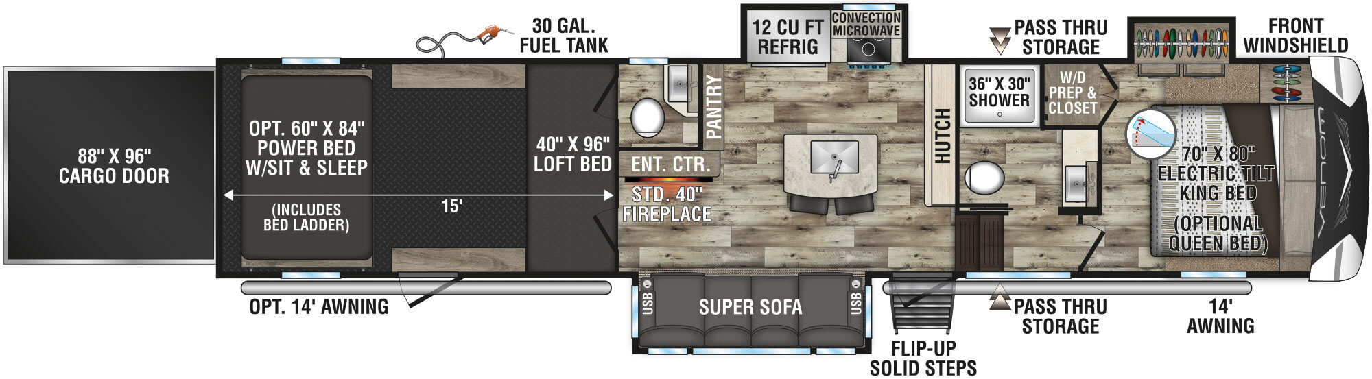 | Awning | 14'/14' opt. |