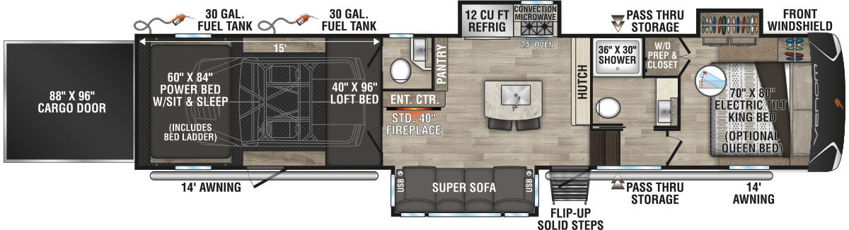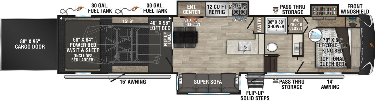 Limited-Edition Robby Gordon Speed UTV offers floorplans with weights ranging from 13,400 to 13,420 and lengths from 42' 10" to 43' 8".