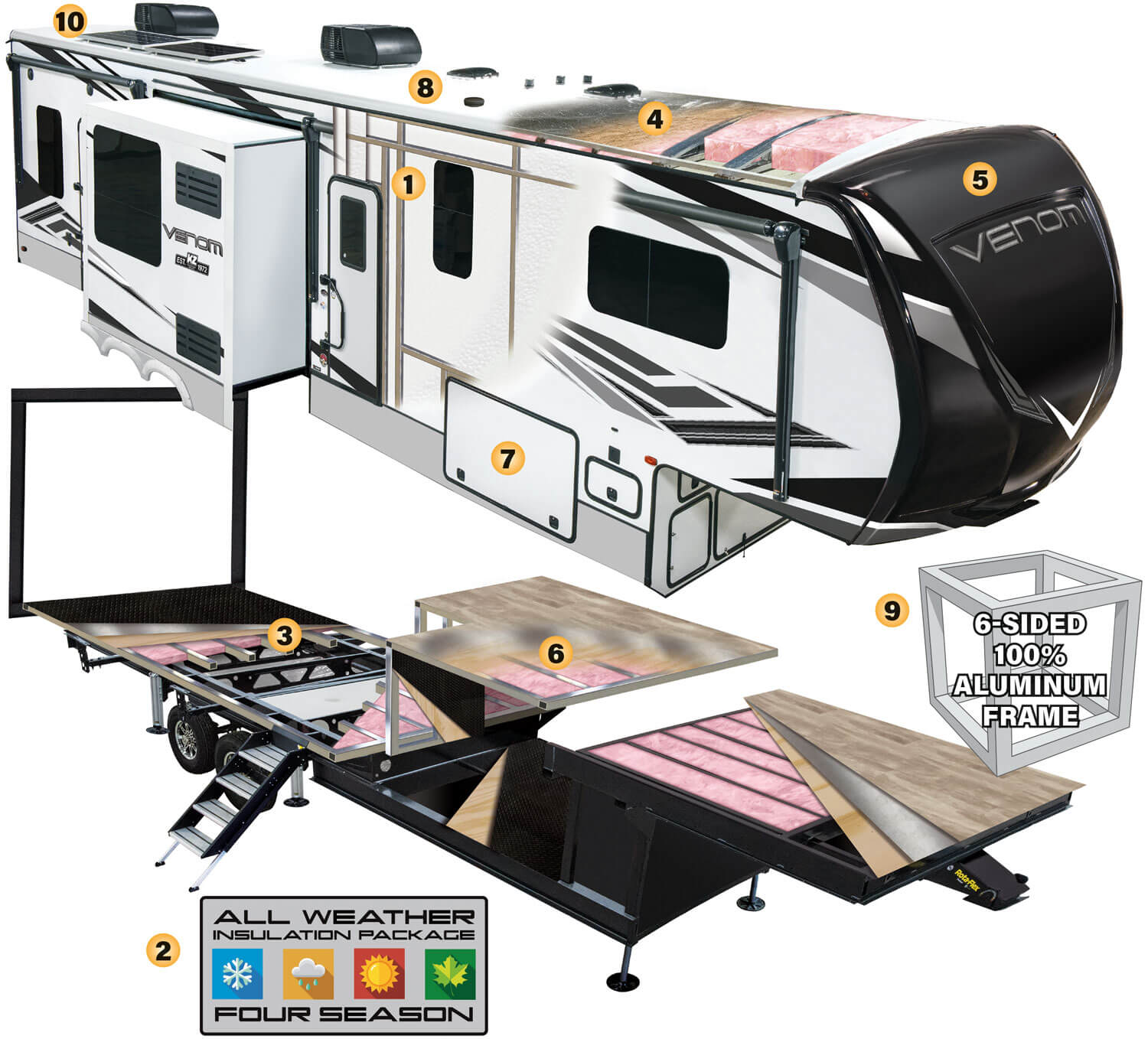 - ALL WEATHER INSULATION PACKAGE heated, insulated and enclosed underbelly plus foil in floor/roof/front (dedicated heat duct in the underbelly)