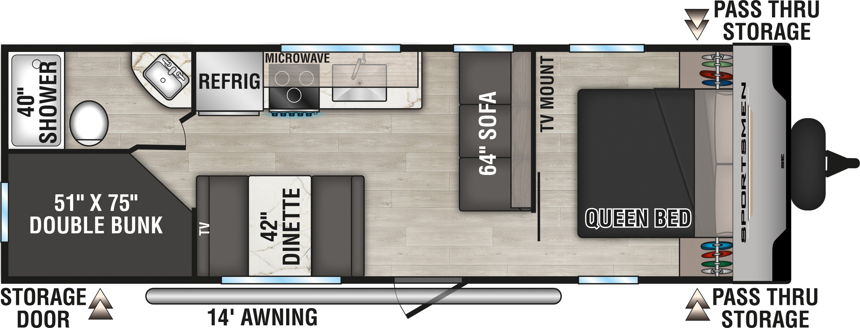 - (2) 12V USB Ports in Bedroom