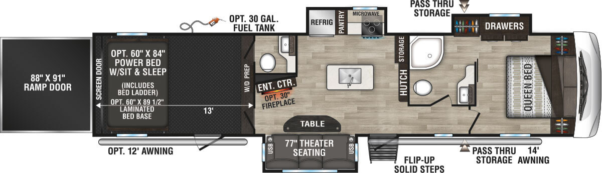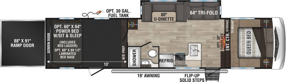 - Generator Prep w/30 Gal. Fuel Tank & Pump Station (N/A w/murphy bed option)